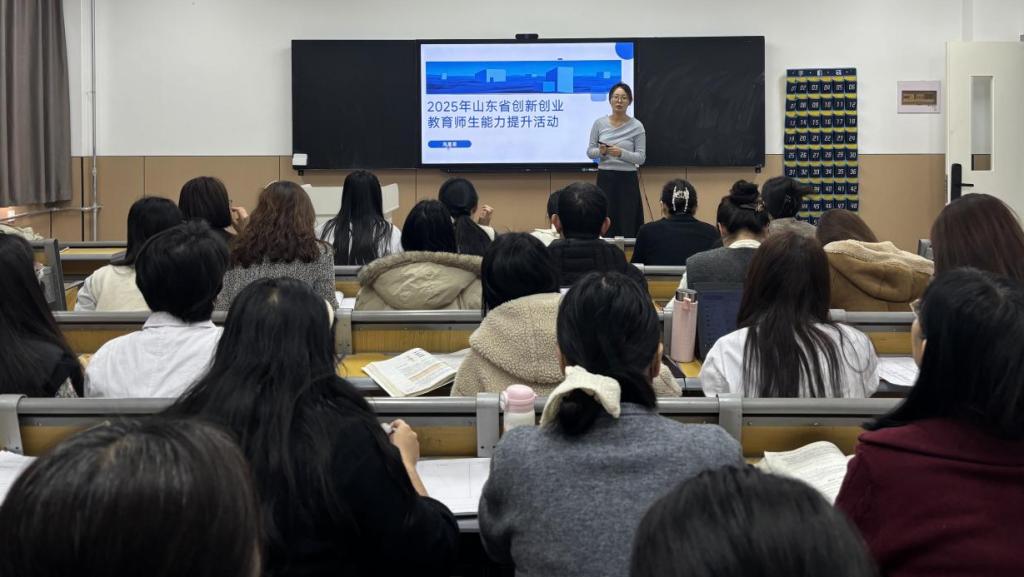高星星老师以“2025年山东省创新创业教育师生能力提升活动”为主题,介绍了力博重工等企业创新成果,指出双创教育应依托政策支持与校企合作,借鉴省外经验突破当前发展瓶颈。她还以扬州工业职业技术学院为例,系统拆解竞赛备赛“11步法”,总结出国赛金奖项目“顶天立地、腰部有力”的特点,并分享了项目培育与筛选的有效途径。