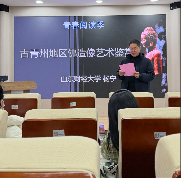 为深化《大学美育》课程教学改革,增强教师艺术素养与教学能力,12月16日,我校通识教育学院特邀山东财经大学艺术学院美术系主任杨宁教授来校,为全体承担《大学美育》课程的教师开设专题讲座,主题为《古青州地区佛造像艺术鉴赏》。讲座围绕青州佛教造像的历史脉络、风格演变与文化价值展开系统讲解,获得与会教师一致好评。