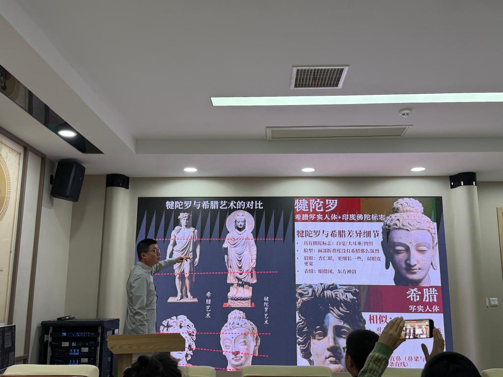 杨教授结合具体造像案例,重点阐发了青州佛造像的艺术价值与文化遗产意义。他深入剖析了其在雕塑语言、审美意境及文化交流等方面的高度成就,强调这批艺术瑰宝不仅是中华美术史上的重要遗产,也为当代大学美育教学提供了生动而深刻的优质资源。