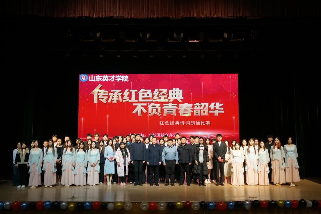 为学习贯彻党的二十届四中全会精神,弘扬爱国主义精神,引导青年学生厚植家国情怀,12月16日,由北校区综合办公室主办的“传承红色经典,不负青春韶华”红色主题朗诵比赛决赛在大学生活动中心举行。北校区综合办公室主任高奎、学生工作处副处长王乾坤、商学院党总支副书记李帅、学生工作处宿舍管理科科长祝景鹏、读者服务部主任韩玉宾及600余名师生代表共同参与。