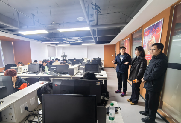 考察期间在企业负责人引导下,全面了解新视觉数码的发展历程与行业成果,重点参观企业实训基地、教学场所、课程学习空间,实地察看实训教学环境、课程规划与人才培养实施模式,并深入企业办公与项目现场,调研工作环境、项目运营及产业实践情况,直观感受企业在数字视觉设计领域的技术积累与育人实力。