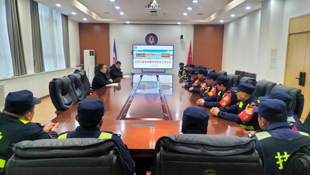 演练结束后,北校区综合办公室随即召开新学期开学保安工作会议。韩长江老师总结寒假期间安保工作成效,分析当前校园安全形势,对春季学期重点任务作出部署:一是严守门禁关口,严格人员、车辆核验制度,强化高峰与重点时段值守;二是加强巡逻防控,聚焦教学楼、公寓楼、围墙周边等关键区域,做到隐患早发现、早处置;三是夯实应急能力,常态化开展最小单元演练与技能培训,熟练掌握防暴、消防、急救操作;四是严明纪律作风,规范执勤形象、文明服务师生,落实24小时值班与信息报送制度。