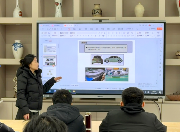本次磨课活动特别设置了教学经验分享环节。山东英才学院2025年度“英才一课”教学竞赛一等奖获得者陈丽红老师结合其主讲课程《人机工程学》,分享了在课程设计、教学创新与竞赛备赛方面的实践经验。她以系统的教学设计与丰富的教学资源为基础,呈现了一堂具有高度参考价值的教学范本,既展现了课程建设成果,也激发了青年教师的教学热情,为设计学院青年教师提供了课程建设与教学创新的有益借鉴。