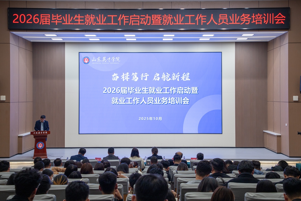 2025年10月30日,山东英才学院在南校区学术报告厅隆重召开2026届毕业生就业工作启动暨就业工作人员业务培训会。会议以“奋楫笃行 启航新程”为主题,全面总结2025届毕业生就业工作,系统部署新一届毕业生就业工作重点,并正式启动第三届大学生职业规划大赛。学校执行校长、党委副书记王晓娜出席会议并讲话,招生就业处、各二级学院负责人、就业工作领导小组成员及全体辅导员参加会议。