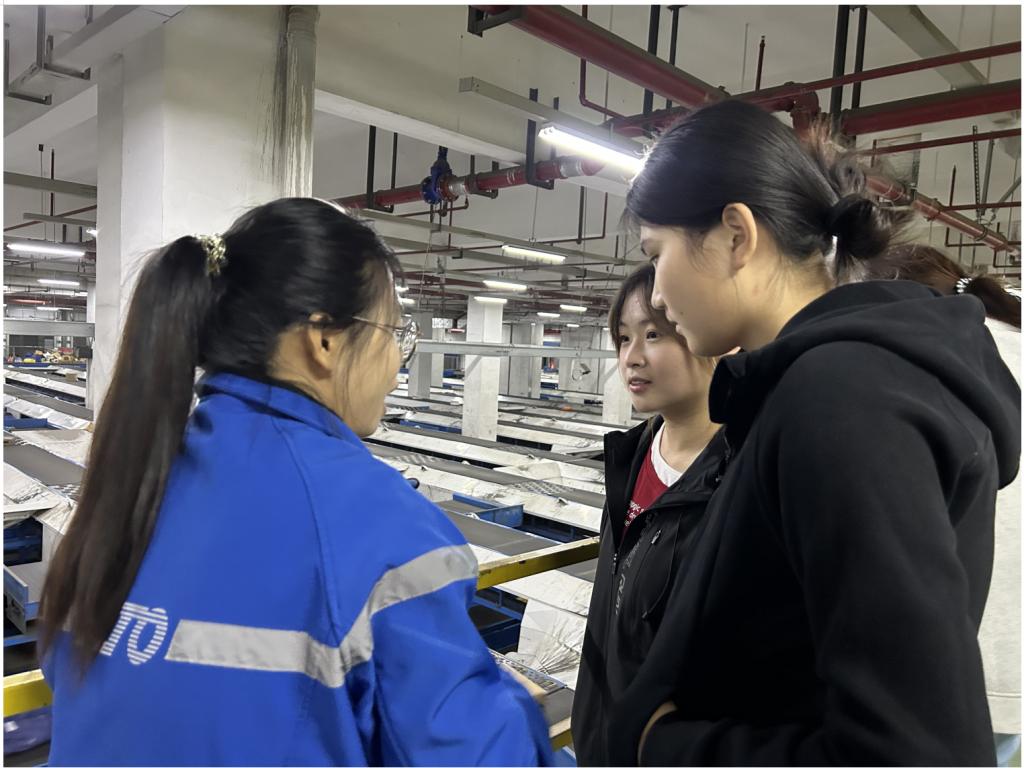 随后师生前往二楼智能机械作业区,企业人员结合现场操作,重点解析包裹入库、拆包流程,展示智能扫码识别、自动分拣等技术应用。针对学生提出的智能定位、货物安全保障等问题,工作人员耐心解答,帮助学生厘清智能物流技术要点。