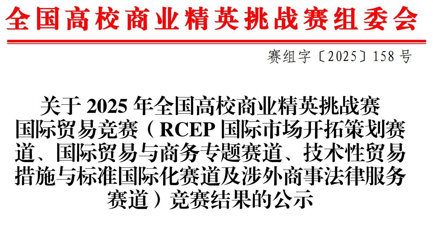 本次竞赛设RCEP国际市场开拓策划、国际贸易与商务专题、技术性贸易措施与标准国际化及涉外商事法律服务四大赛道,汇聚了全国各高校的优秀学子同台竞技,是检验高校国际贸易类专业教学质量、学生实践能力及院校赛事组织水平的重要平台。