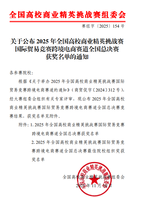近日,全国高校商业精英挑战赛国际贸易竞赛跨境电商赛道全国总决赛圆满落幕。本次竞赛共有来自全国28个省、自治区和直辖市的近500所高校的5000余支队伍报名参赛,我校商学院(国际学院)学子凭借创新的跨境电商运营方案、卓越的外语直播表现,共斩获国家二等奖1项、国家三等奖3项,一举刷新了我校在该项赛事中的最好成绩,充分展现了我校商科学生在跨境电商领域的实践创新实力。