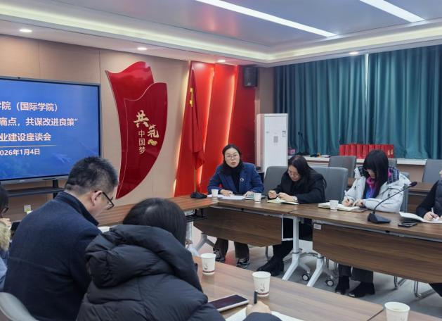 2026年1月4日,商学院(国际学院)在商学院楼408党员活动室举办以“聚焦教学痛点,共谋改进良策”为主题的专业建设座谈会。会议由商学院(国际学院)副院长王鸾主持,各专业负责人、教学骨干、教学督导及教学秘书参加会议,围绕专业建设核心议题深入研讨、共话发展。商学院(国际学院)党总支书记、院长赵坤出席会议并作政策解读与指导。