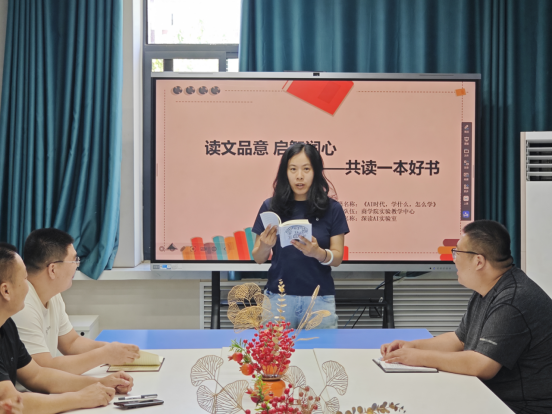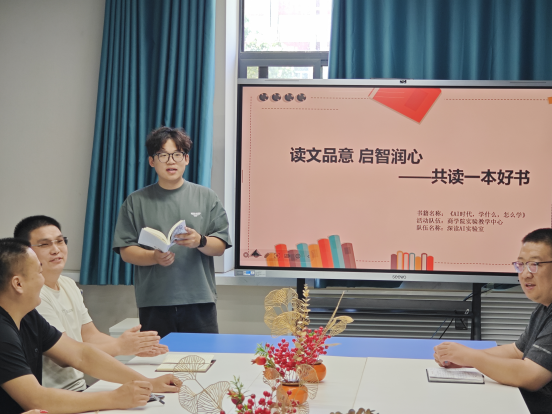 为探索人工智能时代教育新路径,实验教学中心于5月27日开展"读文品意,启智润心"主题读书活动,全体老师围绕《AI时代,学什么,读什么》展开深度研讨。活动由谭建强主任主持,中心全体老师结合教学实践分享感悟。