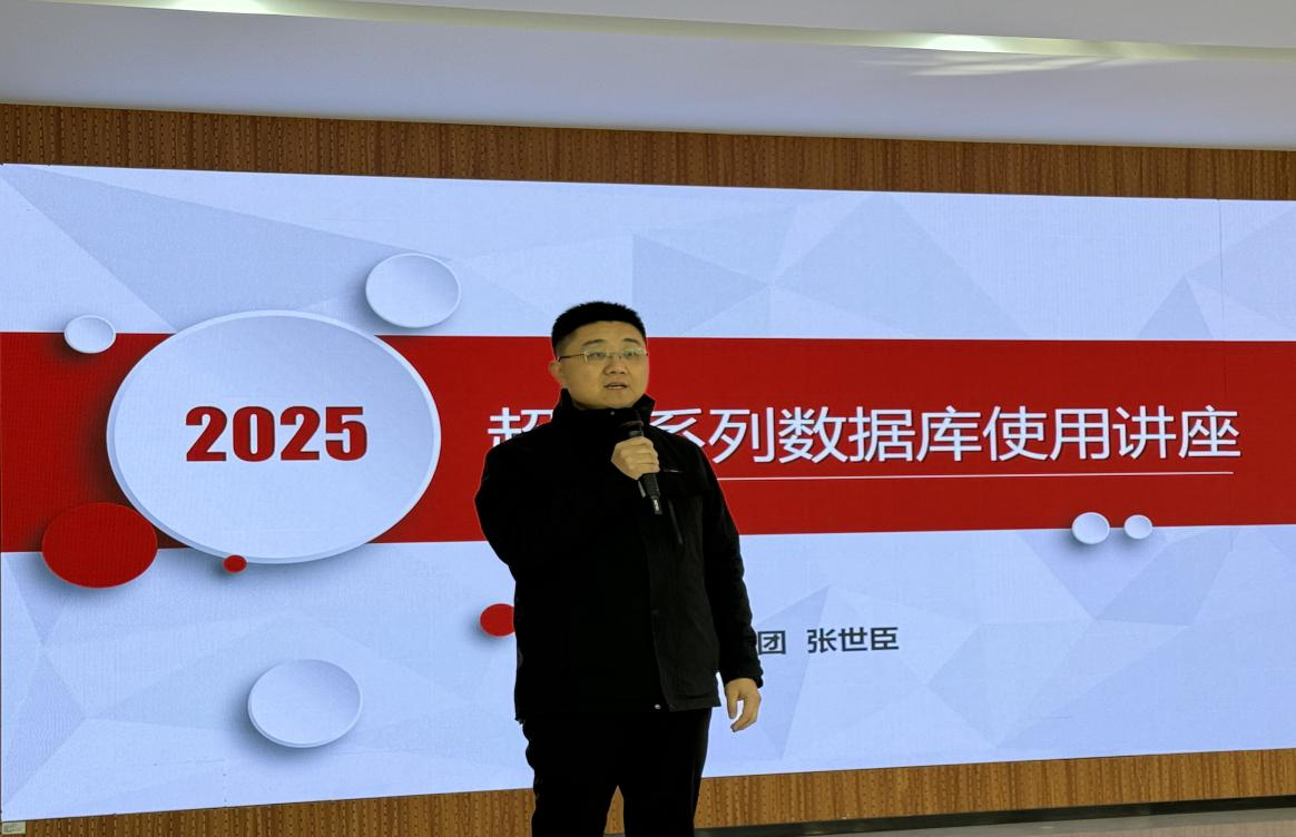 首先开讲的是超星集团培训讲师张世臣。他以"超星系列数据库基本使用方法及操作演示"为主题,为同学们系统梳理了超星数字图书馆的庞大资源体系。张老师介绍,超星不仅拥有海量的电子图书,还涵盖了期刊、论文、视频等多种学术资源。