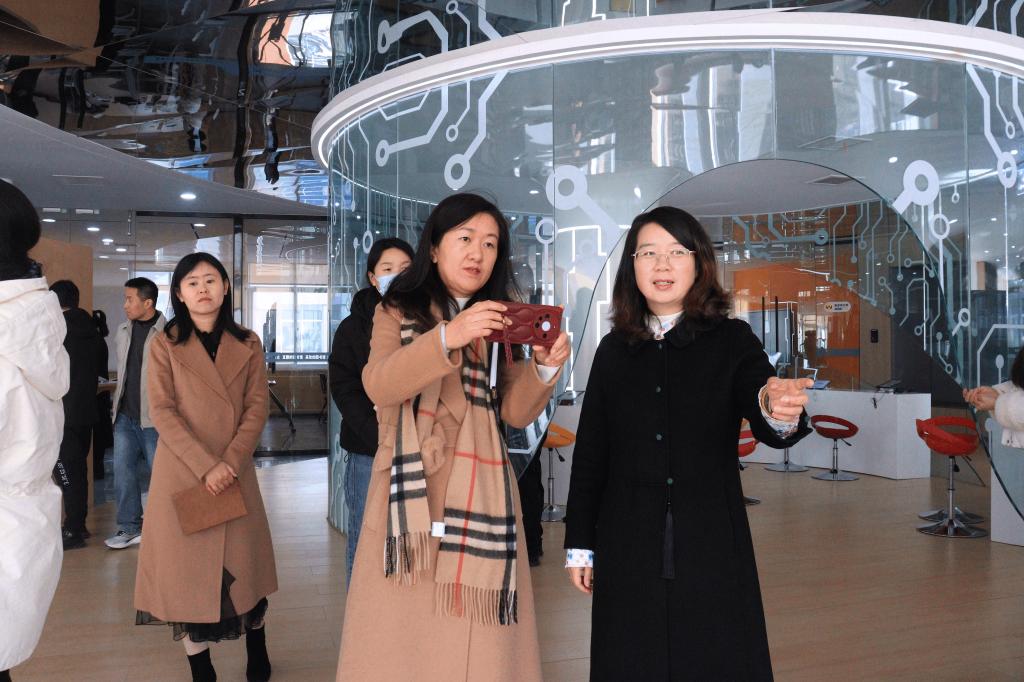 代表团首先实地参观山东英才学院党建与思政教育基地,随后走访图书馆智慧阅读体验区、开放式阅览区、国风自习室、思政体验区等特色阅读空间,沉浸式感受学校图书馆在空间布局与服务功能方面的创新升级。