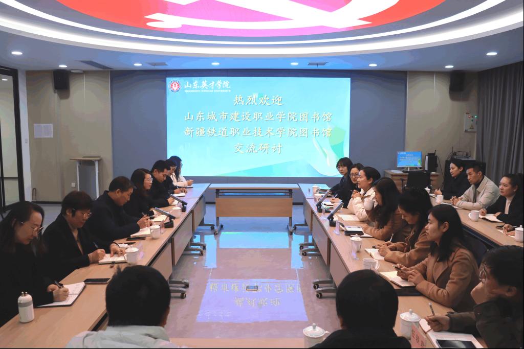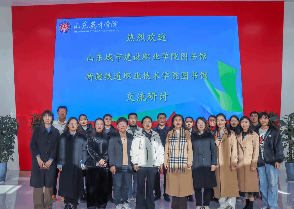 12 月 8 日,山东城市建设职业学院、新疆铁道职业技术学院图书馆代表团一行 14 人,赴山东英才学院开展图书馆建设专题交流。三校图书馆业务骨干共20余人参与考察及座谈,共探图书馆高质量发展路径。