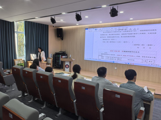 培训中,于艳红老师逻辑清晰地为大家系统解读了从学期初到学期末所需撰写的各类关键教学材料。内容全面覆盖了教学任务书、教学大纲、教学进度计划等前期规划文档,也深入讲解了教学设计、课堂教学工作日志等过程性记录,并重点剖析了期中教学小结、课程考核结果分析报告、教学实施小结及达成度分析等总结反思材料的撰写方法与核心要点。此外,于老师还结合学校“五个一”育人工程的具体要求,对学情分析、师生谈话记录、答疑记录等育人材料的规范化填写进行了专项指导。整场培训内容环环相扣,实用性强,于老师通过实例分析对比,使新教师们对各类材料的撰写目的、内容规范和常见误区有了深刻理解。