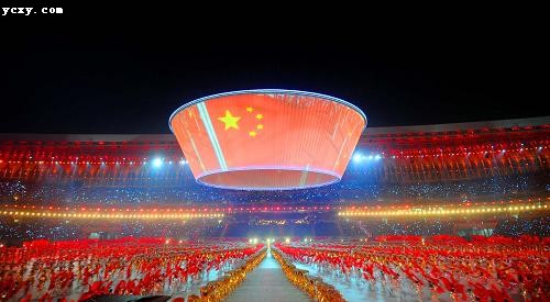 10月16日晚,第十一届全国运动会开幕式在济南举行。这是开幕式上的文艺表演。
