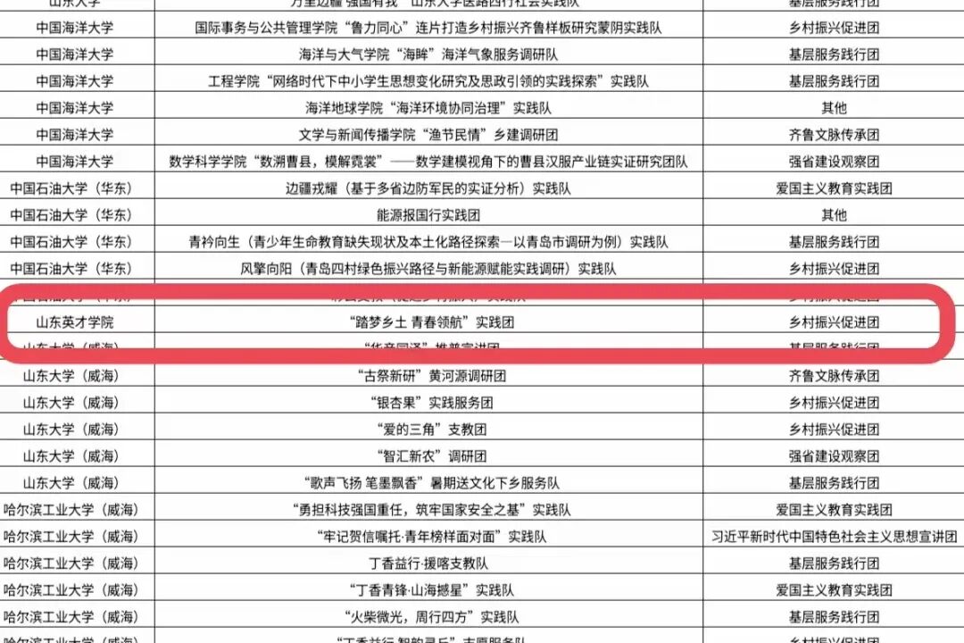 热烈庆祝校团委社会实践部“踏梦乡土 青春领航”实践团,入选2025年山东省大中专学生暑期文化科技卫生“三下乡”社会实践省级重点团队!