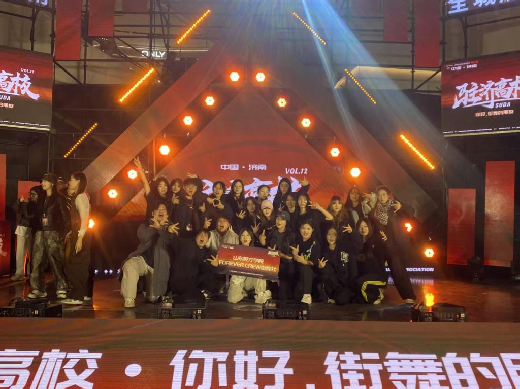 本次赛事竞争异常激烈,来自全国各地/全省的顶尖街舞队伍同台竞技,无论是技术难度还是艺术表现力,都展现出极高的水准。搭配节奏感极强的音乐与精心设计的服装道具,每一个细节都彰显着团队的用心与实力。表演过程中,队员们眼神坚定、气场全开,用饱满的热情感染着现场每一位评委与观众,最终以绝对优势斩获驻济高校——你好,街舞的朋友 优秀社团奖