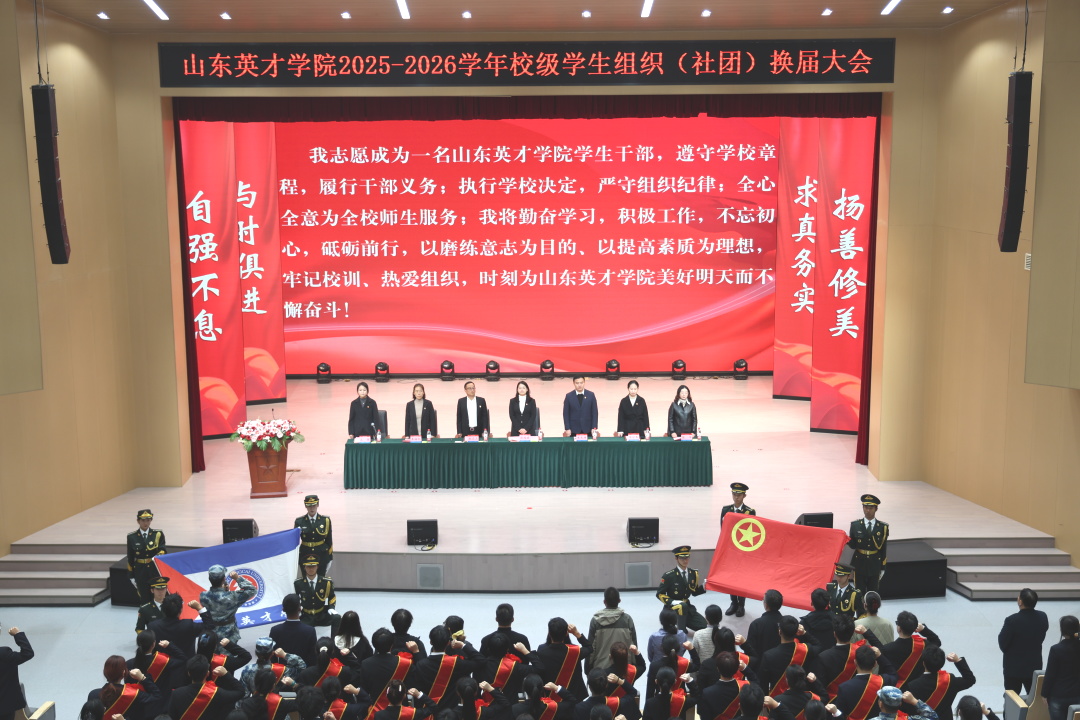 为确保新学年我校学生工作顺利开展,加强校级学生组织(社团)的队伍建设,增强学生干部队伍的凝聚力与战斗力。10月31日中午,“凝聚青春力量 共筑时代新程”山东英才学院2025-2026学年校级学生组织(社团)换届大会,在南校区音乐厅隆重举行。