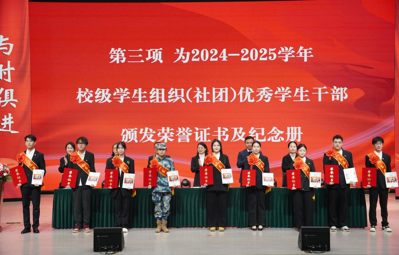 与会领导为2024-2025学年校级学生组织(社团)优秀学生干部代表颁发荣誉证书及纪念册