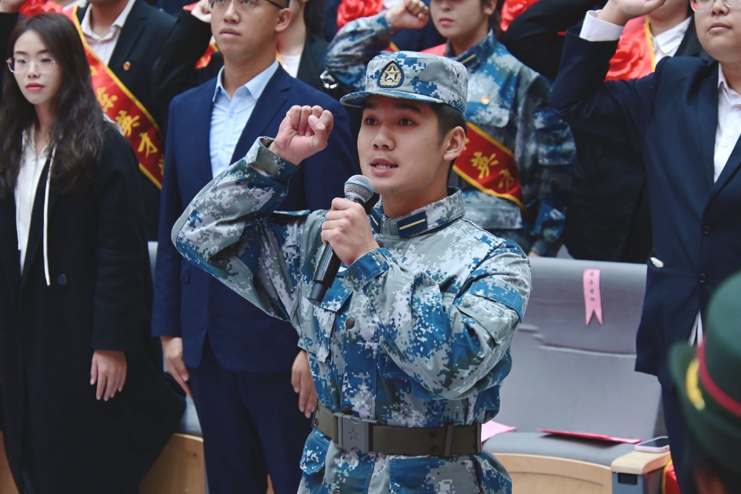 在兄弟连出旗后,全体成员面对共青团团旗和山东英才学院校旗,举起右手,在兄弟连周庆航的领誓下,以洪亮的声音郑重宣誓。铿锵誓言展现了新一届学生干部勇担使命、开拓进取的决心与信心。