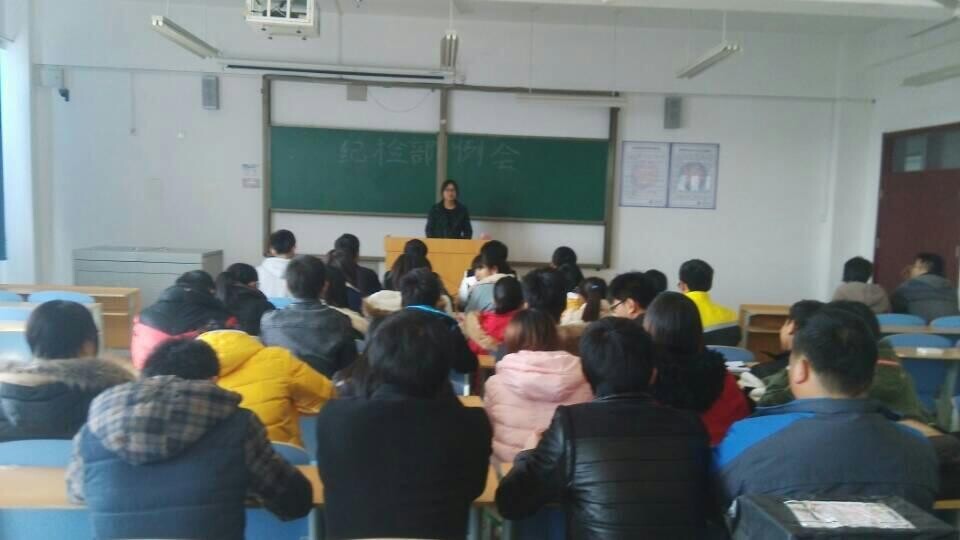 本次会议程东主席与部员们进行心与心的交流,同时指出在工作中存在的问题并让改正。身为纪检部的一员不止要有狼的精神,同时应该懂得纪检部也是一个纪律严明的部门。一个纪律严明的部门则是由多个纪律严明的部员组成的。这也是贾欢副主席在本次会议中表达的重点。魏文娟部长先进行上周工作总结。新闻稿、跟会、值班执勤、组织入场一律按以往的要求继续进行。除此之外,充实而又忙碌的一个月已敲响了战鼓,双旦晚会的组织入场,饺子宴、团课培训、趣味运动会都需要部员们打起十足的精神奋力作战。
