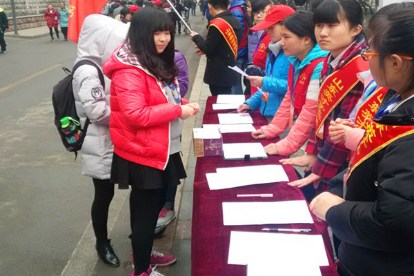 山东英才学院青年志愿者协会以营造良好的校园文明氛围,弘扬“诚信”这一中华民族的传统美德,提高大学生对个人诚信问题的认识与重视,丰富同学们的课余文化生活,展示我院学生的品德修养为目的,于2015年12月14日在大学生活动中心前举办了“诚信书架”活动。