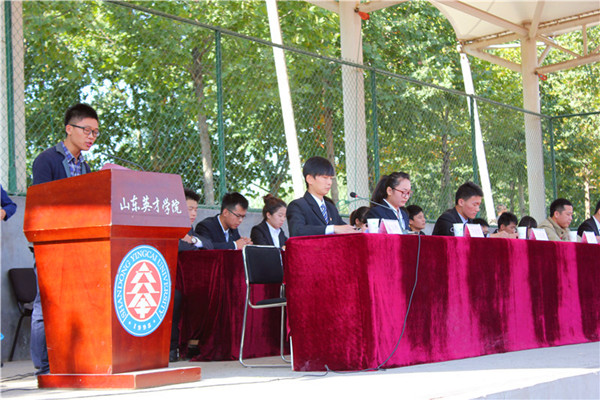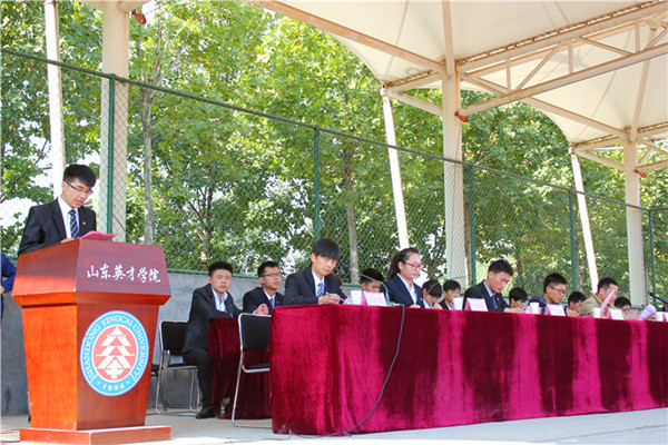 此外,校团委副书记王鹏飞作指示,他强调本届校园科技文化艺术节以健康向上、丰富多彩为核心,句句深入人心。他还强调全校学生紧密地团结在一起,共同学习进步,让山东英才学院成为一个真正的大家庭,并指出人生没有所谓的好与坏,各自的机遇与挫折取决于个人的态度,希望大家在以后的工作生活中以更好、更积极的态度来学习和成长。顿时,台下掌声一浪盖过一浪,将本次仪式推向高潮。熟悉的音乐响起,一首《英才之歌》响彻田径场乃至整个天空。仪式在各位领导、老师及筹委会全体成员合影留念中圆满结束。
