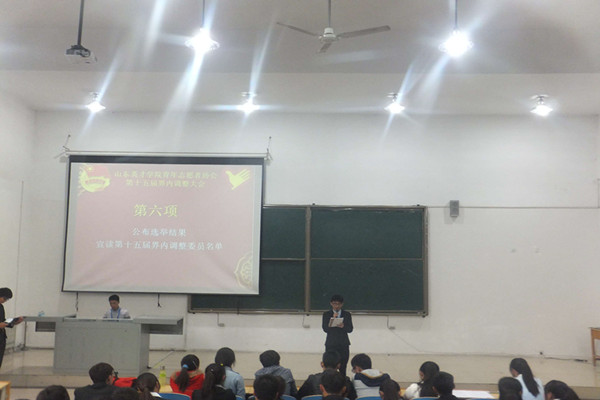 2015年10月23日中午,山东英才学院青年志愿者协会于弘毅楼1009教室举办第十五届委员选举大会。参与此次大会的成员有校团委组织部副部长孙祥,14届青年志愿者协会委员,14级青年志愿者协会竞选干事以及全体15级青年志愿者协会干事。