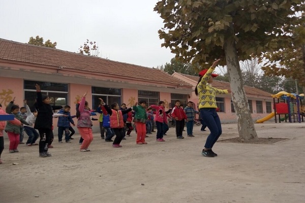 下午13:30分,所有要参加此次支教活动的志愿者聚集在校门口,文艺部部长王成良讲解了活动注意事项,随后副部长陈璐组织其成员乘车前往崔寨小学。初进校园,孩子们还没有下课,热情似火的校长便将志愿者们邀请到办公室,王成良则与其交谈了相关事宜。紧接着王成良安排两人一组带班,这是一节广播体操课,孩子们都怀着无比兴奋的心情整齐的站在操场等待,尽管寒风凛凛,但孩子们脸上的笑容不减。教课中,志愿者耐心教导,认真仔细的讲解其每一个动作,并与孩子们产生了浓厚的感情。