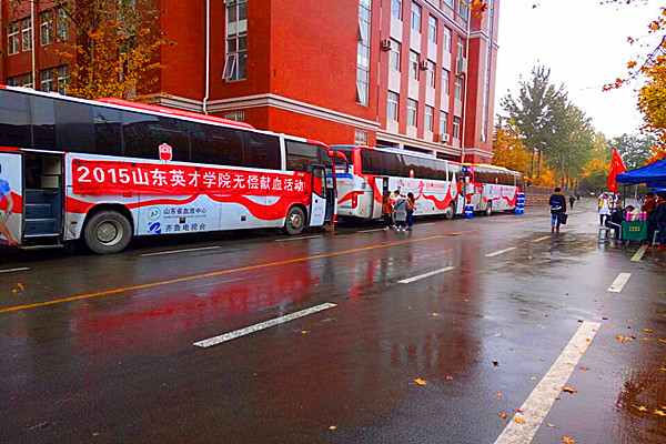 寒风凛冽,冬雨连绵。英才校园的一个角落却散发出似火的热情,为这初临的寒冬增添一份温暖。为增强学生自我奉献精神和服务精神,提升帮助他人的意识。2015年11月13日,山东省献血中心来我校宣传无偿献血活动,本次活动在网球场旁举行,本次无偿献血对象为英才学院全体学生。