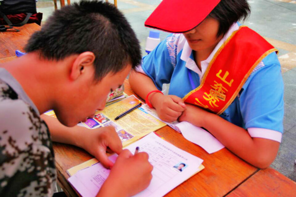 连日阴晴不定的天气并没有影响到青年志愿者协会各位志愿者同仁们对招募工作的热情与活力。2015年8月25日在大学生活动中心大学生活动中心、大学生创业中心前以及第二餐厅,志愿者招募活动正在如火如荼的开展,与阴雨蒙蒙的天气形成了极大反差。