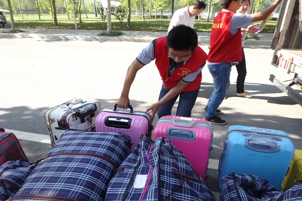 为了迎接国际交流学院的同学们入驻英才学院北校区,青年志愿者协会于9月20号上午7:35在大活门口集合,在团委指导老师杨淑老师的带领下分别去五号公寓和七号公寓,帮助南校区国际交流生搬运行李,各部门负责人及部员们一百多人展开了活动。
