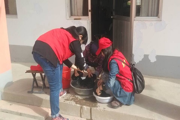 老人见到志愿者都非常地开心,亲切地与他们交谈,志愿者也十分热心,帮老人洗衣服,打扫院子等。和老人的聊天过程中我们了解到老人的基本情况,他们见到志愿者就像见到自己的孩子那般想要亲近,这也使志愿者关爱老人的活动有了更大的意义,给老人们送去一份温暖,弘扬了“奉献、友爱、互助、进步”的志愿精神。