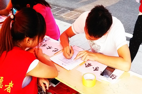 伴着清晨的阳光,志愿者们换上鲜明的志愿者队服,在大学生活动中心广场开始新一天的纳新。看着刚刚报道完的新生对未来的憧憬,志愿者们对新一年的工作充满了希望。随后,在与新生的不断交流答疑中,志愿者们热心细心的指导,为新生将来的大学生活描绘了一幅幅的蓝图。14级新生填完申请信息之后,不仅对志愿者充满了热情,而且对整个学校充满了希冀。虽然北校区报道的人数不算太多,但是“青年志愿者”对他们还有十足的吸引力与影响力。