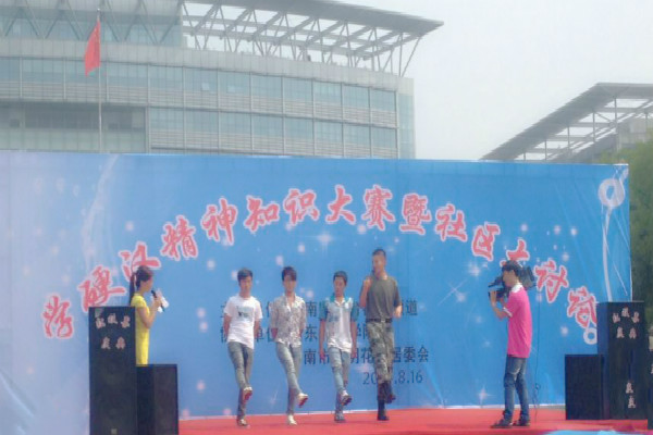 2014年8月15日,山东英才学院青年志愿者协会有幸参加了济南电视台真人秀节目《硬汉主播团》在社区的的学硬汉精神知识大赛活动。参加此次活动的是青年志愿者协会的新成员和医学院分会的成员,虽然这些新成员没有经过培训,却表现非常优秀,展现了志愿者的良好精神面貌和优良传统美德。