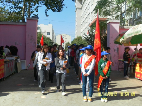 随着我校师生日益增多,我校东门口的交通拥挤也出现了较严重现象。因考虑到学校东门口一到吃饭时拥挤,使同学们的出行很是不方便,浪费了大家的学习时间及休息时间,还存在安全隐患等现象。于 2012年10月10日,由山东英才学院青年志愿者协会,机械分会和建工分会共同举办,由各个分会和部门承办的“校园交通疏导活动”在山东英才学院校东门举行。