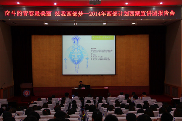 5月8日,西部计划西藏宣讲团报告会在我校学术报告厅顺利举行,参加此次会议的领导有党委书记夏季亭、学工部部长龙新良、团委副书记王鹏飞,我校志愿者代表参加西部计划西藏宣讲团报告会。