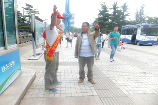 此次活动志愿者们分别在两个志愿者服务岗进行志愿服务,志愿者们整齐的站在志愿服务岗周围,始终坚守在自己的岗位上,不断发扬吃苦耐劳的精神,用他们真诚的微笑和辛勤的努力,穿梭在人群中不停的为行人服务,假日期间,泉城广场的人流量明显提升。志愿者们热心的向询问路线的行人指路,有些志愿者怕行人找不到路,还特意带他们走一段路,直到志愿者放心了才回到志愿服务岗。志愿服务期间,志愿者们还选出了五个人出来捡拾泉城广场路面的垃圾,虽然苦,虽然累,但他们却仍坚持的做下去,并且在这期间,天空还下起了毛毛细雨,但即使这样,也没有打击志愿者们服务的信心,他们继续帮助需要帮助的人,完全忘却了天气的影响。一位志愿者告诉我们:虽然累了一些,但是看到泉城广场的路面越来越干净,行人那满足的笑容,他们就觉得累一点都是值得的。