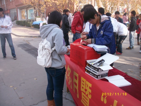 自11月14日“爱心义卖,携手平原”活动启动仪式以来,山东英才学院青年志愿者协会的志愿者们每天都在大学生活动中心门前进行爱心笔义卖活动。