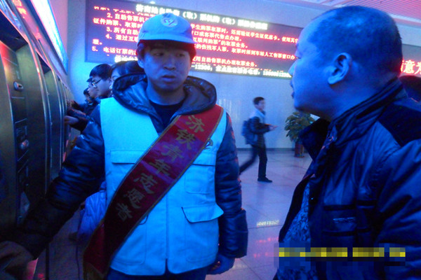 2014年2月22日,英才学院青年志愿者协会40余名志愿者在济南火车站参加了春运志愿服务活动。