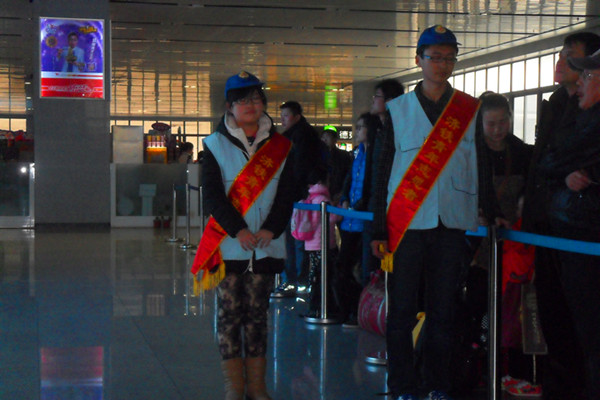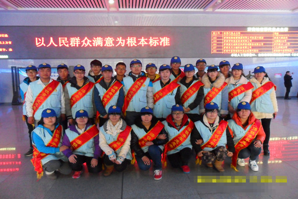 2014年2月23日,第二批英才学院在校的25名志愿者参加了在济南火车总站的铁路志愿者服务的活动。