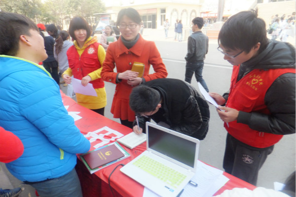 志愿者们为过往的师生讲解此次大赛的意义以及比赛内容,很多师生表示对“PPT制作大赛”很感兴趣,同时非常积极的报名参加比赛。志愿者们还准备了一条横幅,让来往的学生在上面写下自己的名字。志愿者们看到有那么多同学积极的响应,内心也受到了极大的鼓舞,更加热情的投入到为学生们介绍比赛的工作中。活动中,团委老师寻芬,青年志愿者协会会长米孝海也亲临指导志愿者们的工作,让志愿者们更好更快的完成。
