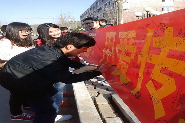 2014年3月14日,北校区青年志愿者分别在餐厅门口和大学生活动中心举办了以“为马航祈福,传递正能量”为主题的活动。这次活动主要由监察委员会承办,青年志愿者的部长及部员们共同参与本次活动。