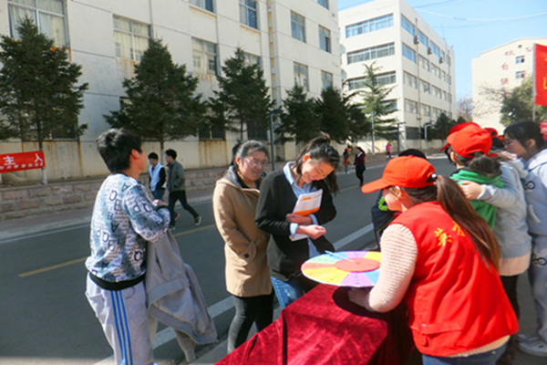 本次活动是由文艺部发起,目的是宣传雷锋精神。志愿者们身穿红马甲,戴着红帽子,配带着红绶带。活动规则:有两个箱子,参与者在其中一个箱子抽取纸条,回答问题,或是做一件事。回答正确或完成这件事之后就可以转动转盘,奖品有印有雷锋图像的徽章,棒棒糖,邮票…很多过往的同学对活动产生了浓厚的兴趣,纷纷报名参加。活动期间,播放着青年志愿者之歌及倡导勤俭节约,奉献的文章。活动现场不断有同学来咨询,志愿者们忙的不亦乐乎,号召同学们积极参加。