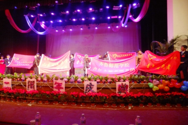 12月14日,山东英才学院青年志愿者协会十二周年庆典晚会在南校区大学生活动中心举行。出席本次晚会的有院团委书记龙新良和团委老师王坤丽等团委领导及驻济高校二十多家兄弟院校的志愿者。