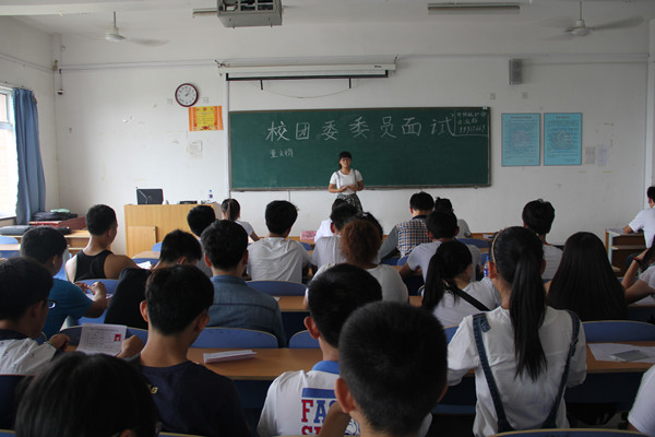 此次面试经团委委员统一协商进行了合理安排和筹划,初试的新生力量于规定时间准时到达综教南北楼集合地点。这些新生力量由指定的团委委员带入6001--6008室进行面试。面试的同学们有的感到紧张焦虑,有的信心满满,不论是那种状况他们脸上都带着一丝笑容。同学们有次序的进入各自部门进行他们大学以来的第一次大型面试,他们一个个都做了充分的准备,虽然有的同学表现的有些紧张有些激动,但是总体来说此次面试让同学们收获了许多,知道了面试的流程,了解了面试应该注意什么,以及应该怎样更好的展现自己的青春活力。