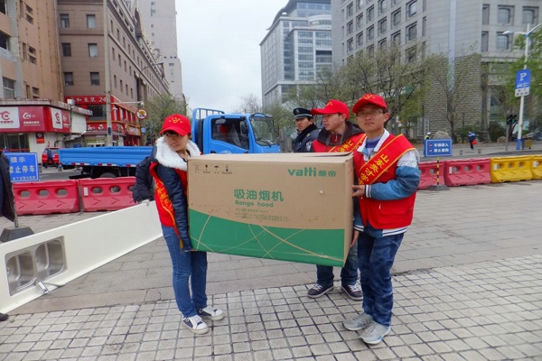 志愿者们分两个班次进行志愿服务,志愿者们在寒冷的天气里整齐地站着;当一支队伍在服务岗不远处艰难地搬运物品之时,志愿者队伍不顾劳累帮助大叔们搬箱子,由于这些物品要搬到另一个场地,志愿者之间立即展开积极的沟通协调,注重团结协作,于是留下3个女生坚守岗位,4个男生坚持帮助大叔把物品送至目的地。志愿者的服务态度和奉献精神得到了他们的肯定与赞扬;志愿者还热心向行人指路,搀扶老人过马路以及为路人换零钱,方便他们的出行。而在下午之时,整治环境的队伍在青年志愿服务岗附近进行栽花,志愿者队伍也积极参与到了其中。他们还及时有耐心的劝阻攀爬栏杆的小孩,后来小孩也积极配合,遵守交通规则。他们还为前来借助电话寻找家人的男子提供了热情的帮助,直至男子联系到家人……
