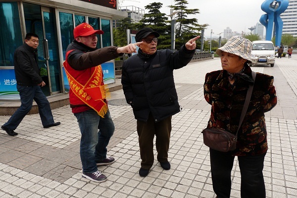 为了更好地进行志愿服务,大家简单的吃过午饭又站在了服务地点,当听到行人的一声声谢谢时,所有的累和困都烟消云散了,有的只是快乐。