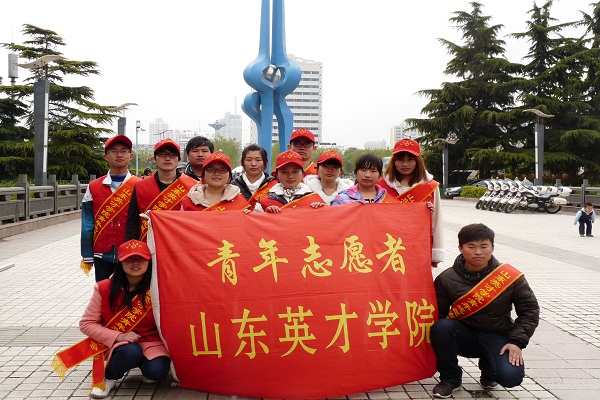4月20日,山东英才学院南北校区共15名青年志愿者在济南泉城广场东门和北门开展了志愿服务活动。活动主要内容有为行人指路,帮园艺工作者种花,扶残疾人过马路等。