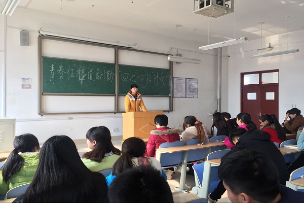 2015年12月9日山东英才学院北校区团委在经管楼408教室开展了以“四进四信”为主题的恳谈会。为更好引导同学坚定中国社会主义道路的信念,团委指导老师杨淑发起号召进行恳谈会。参与此次会议的人员有团委指导老师杨淑、各部门负责人以及团委全体成员。