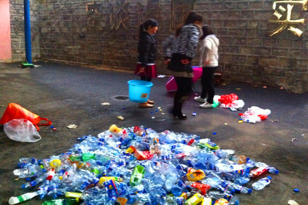 中午12:00,青年志愿者协会各部门、分会部员们拿着各自收集的矿泉水瓶在大学生创业中心前集合,他们以各自所在的部门或分会为单位把各自收集的矿泉水瓶数好,然后由秘书处的部员负责记录,最终本周共收集1576个矿泉水瓶。所有瓶子的个数统计完之后,由商学院分会的部员统一运到了回收废品站处理掉这些矿泉水瓶。随着这批矿泉水瓶的处理完毕,“蓝天行动”截止今天正式结束。